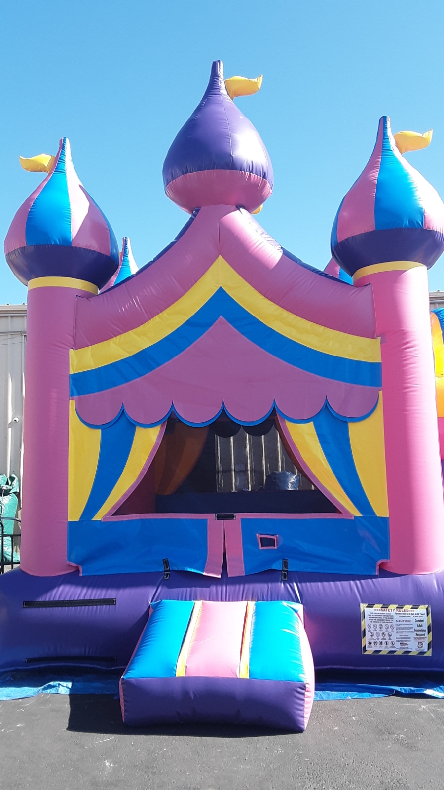 13x13 Unicorn Glitter Castle Bouncer with basketball hoops inside.